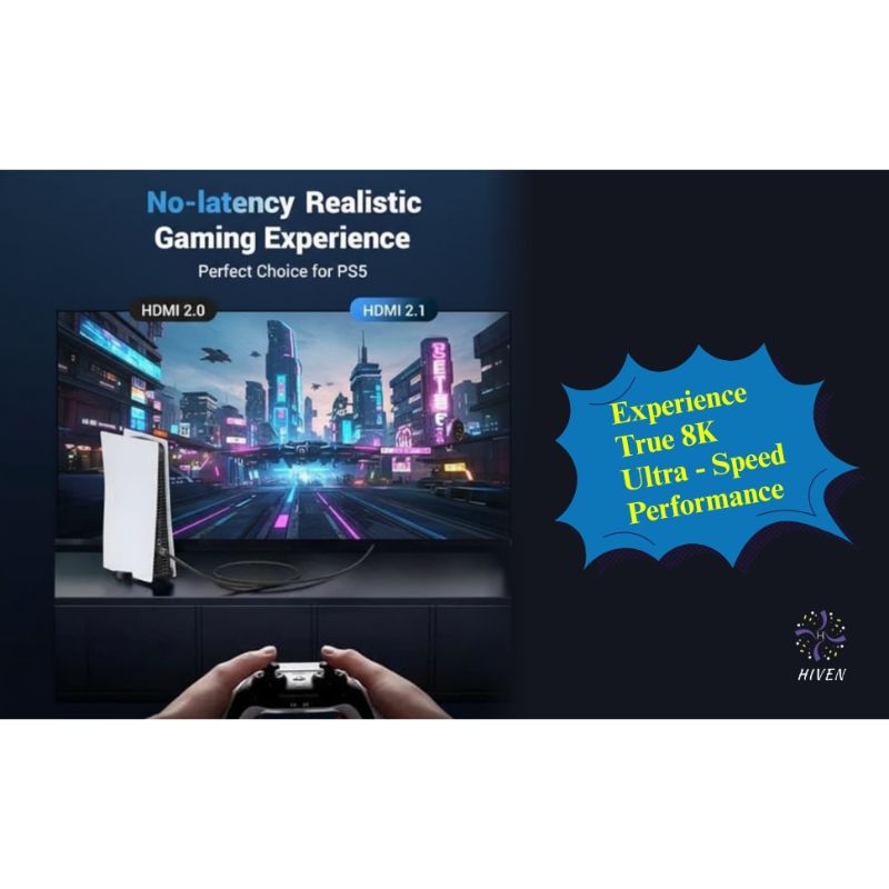 HIVEN HDMI Cable 2.1, 8k@60Hz, 4K@120Hz UHD Resolution, (5M)